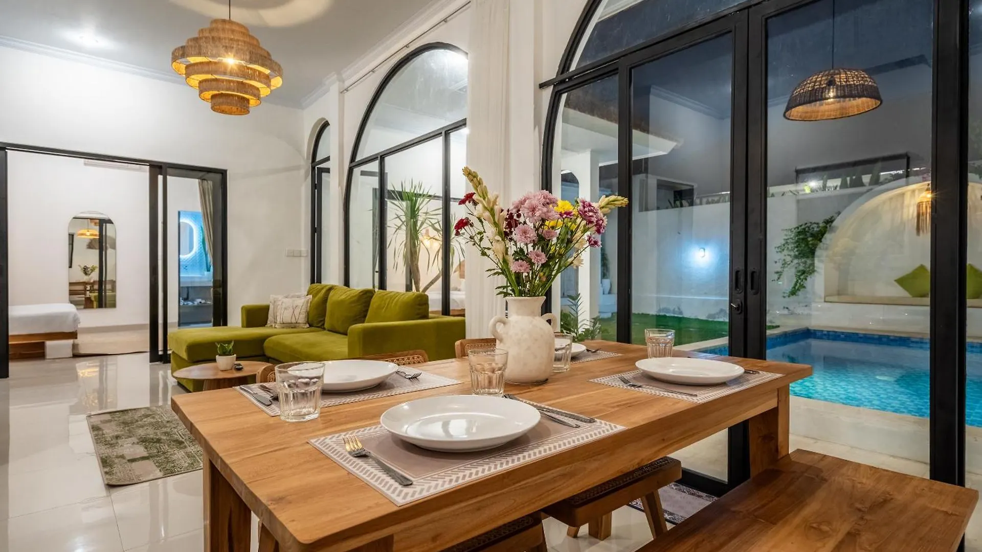 La 2 Bedrooms Villa 5 Minutes To Echo Beach Canggu ha un angolo cottura attrezzato e un bollitore elettrico, un frigo e una vetreria. Gli ospiti possono cenare al ristorante El Crudo, situato a 200 metri.
